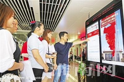 當日上午,在市政務服務大廳,前來辦理事務的市民王先生,意外發現大廳里多了一臺外觀新穎的大型電子閱報屏!巴ㄟ^手指觸屏、滑動,我翻閱了當天的淮南日報、淮河早報,瀏覽了淮南網,點擊了‘學習強國’,還觀看了展示淮南旅游風光、美好形象、厚重歷史以及經濟社會民生環境發展的短視頻?煽础⒖陕、可讀,圖、文并茂,聲、音并重,多維呈現。我很喜歡這種閱讀形式!”王先生告訴記者。