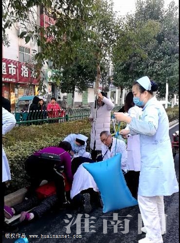 近日上午,市長熱線員工楊娜娜在家人陪伴下前往田家庵區(qū)公園街道社區(qū)衛(wèi)生服務中心進行常規(guī)產(chǎn)檢。剛檢查結(jié)束走出醫(yī)院大門,就看見綠化帶旁一中年女子在大聲呼救,楊娜娜和其家人急忙上前,發(fā)現(xiàn)一老人暈倒在社區(qū)醫(yī)院附近的綠化帶邊,不省人事。聞訊而來的社區(qū)醫(yī)院醫(yī)護人員查看病情后,立即進行靜脈注射和心肺復蘇等急救措施,告知患者家屬趕快撥打120急救電話。由于出門比較急,女子出門未帶電話,楊娜娜家人見狀立即掏出手機幫其撥打120,而楊娜娜此時也加入救助行列。她一手護住腹中的孩子,一手高舉著吊瓶,直到家人打完電話換下她。數(shù)九寒冬,路面濕滑,社區(qū)醫(yī)院醫(yī)護人員已無暇顧及,跪在冰冷地面持續(xù)進行心肺復蘇急救,其中一位女醫(yī)生因體力不支,險些昏厥過去,但依然不放棄搶救。時間一分一秒過去,120急救車因醫(yī)院附近道路施工等原因,直到20分鐘后才過來,而四周圍觀群眾則自發(fā)結(jié)隊攔住對向車輛,以便救護車順利到達,為患者爭取更寶貴時間。