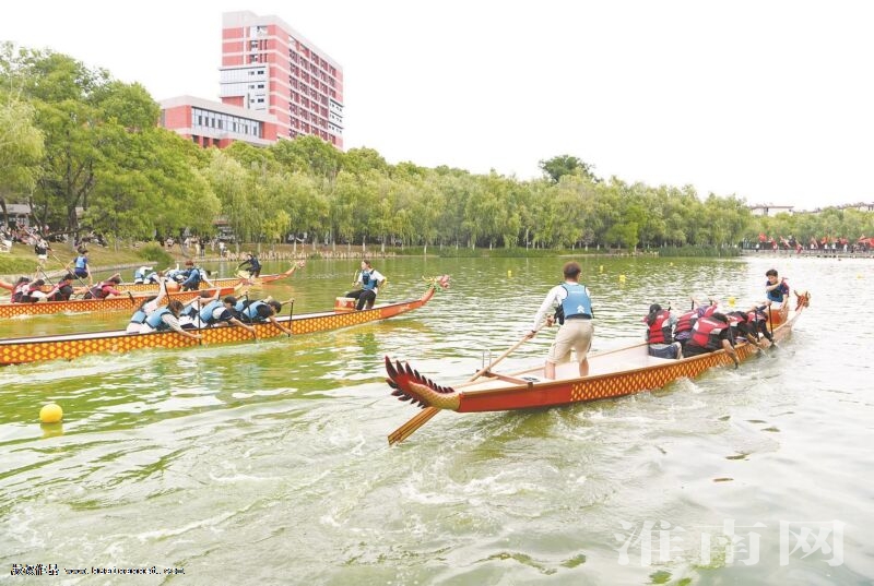 (記者 廖凌云 陳彬)粽葉飄香,龍舟競渡。6月7日下午,“我們的節(jié)日·端午”淮南師范學院第二屆端午龍舟賽在該校知明湖開賽,36支隊伍近300名選手為大家演繹了青春無敵的“速度與激情”。