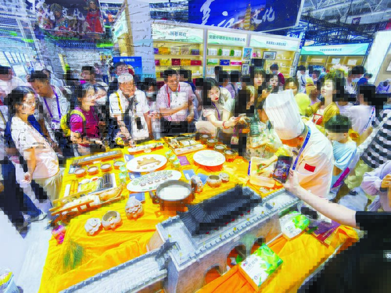 安徽旭咚作為中國速凍牛肉湯標準化開創者,攜“橘生南”品牌牛肉湯及預制菜產品參展,其創新工藝與央視金獎品質吸引眾多采購商駐足洽談。淮畔良品集中展示淮南牛肉湯、八公山豆制品等200余種特色農產品,以標準化品控構建的產業鏈體系贏得市場認可。張士宏豆腐館現場演繹了千余種豆腐菜品,其中,非遺傳承人張士宏展演豆腐雕刻絕技“花開富貴”,精湛的刀工令觀眾贊嘆不已。