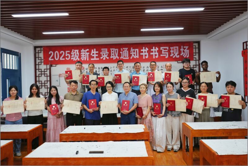 一撇一捺顯神韻,一橫一豎見真情。7月28日,淮南師范學院舉行2025級新生錄取通知書毛筆手寫活動,17名退休教師、在職教師、在校學生及校友齊聚一堂,共同為3800余名2025級新生手寫錄取通知書,以墨香傳遞人文關懷。
