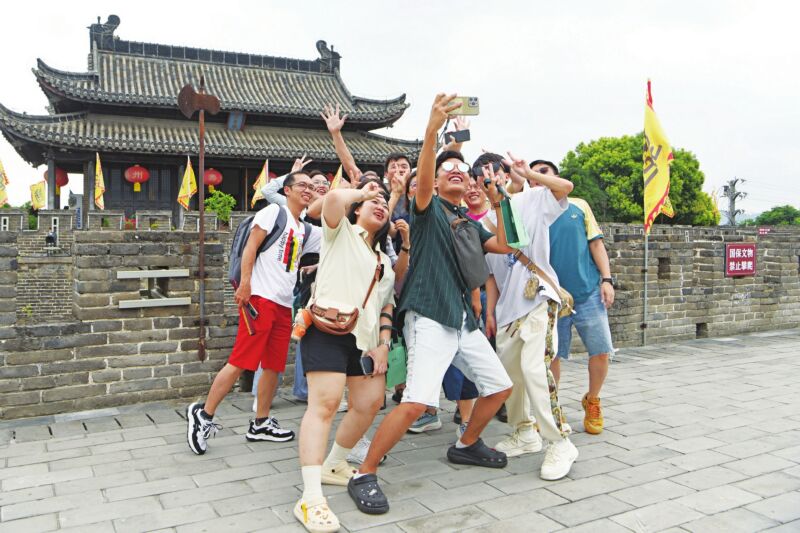 馬來西亞入境旅游團游客在壽縣古城合影留念。