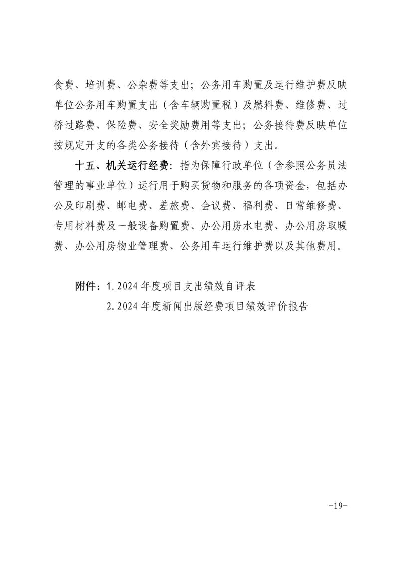 附件:1.2024年度項目支出績效自評表 2.2024年度新聞出版經費項目績效評價報告