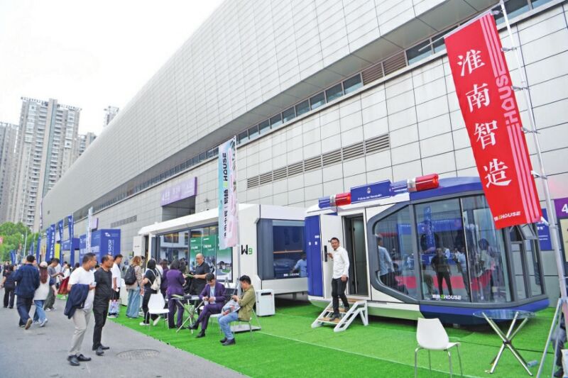圖三:觀眾參觀安徽中輝集團房屋科技有限公司展出的太空艙。