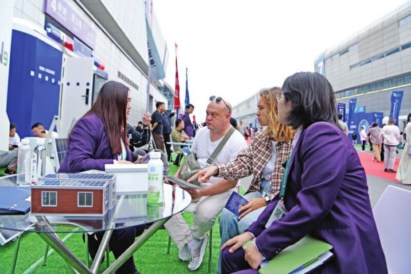 圖四:來自俄羅斯的客商與安徽中輝集團房屋科技有限公司洽談太空艙業務。