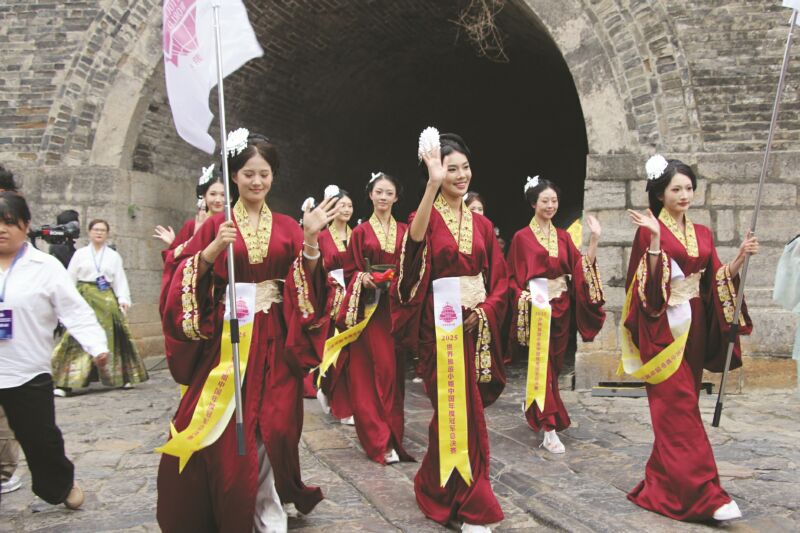 古城因美麗而靈動,美麗因古城而厚重。9月20日,2025世界旅游小姐中國年度冠軍總決賽入城儀式在壽州古城賓陽門隆重舉行。86名佳麗身著戰國袍,在現場燃放的絢麗彩煙中,從古城賓陽門入城,登上古城墻,用青春的腳步丈量歷史,用燦爛的笑容為壽州古城旅游代言。當天,佳麗們還在“向世界推廣壽縣”代言板上鄭重簽名,通過她們的美麗身影,讓更多的人了解壽縣、走進壽縣、愛上壽縣。應邀參加入城儀式的國家文化旅游部原綜合司司長、2025世界旅游小姐中國區總決賽評審委員會主任鄧宗德說:“2025世界旅游小姐中國年度冠軍總決賽入城儀式在壽州古城舉辦,使大家感受到歷史帶來的古風古韻,時尚氣息與古樸典雅相得益彰。文化是旅游的靈魂,旅游是文化的載體與延伸。相信通過此次賽事,淮南壽縣將會迎來文旅發展的新篇章,成為可記錄、可停留、可欣賞、可回味的優秀旅游目的地。”