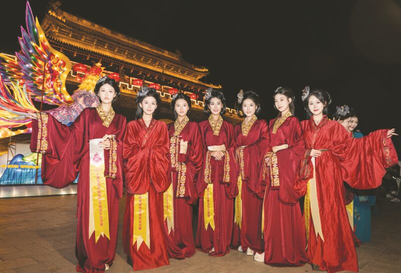 磚石斑駁的古城墻上,一群身著戰國袍的佳麗裊裊走過,千年車轍深深的青石板路與現代時尚氣息交織,仿佛完成了一場穿越時空的對話。