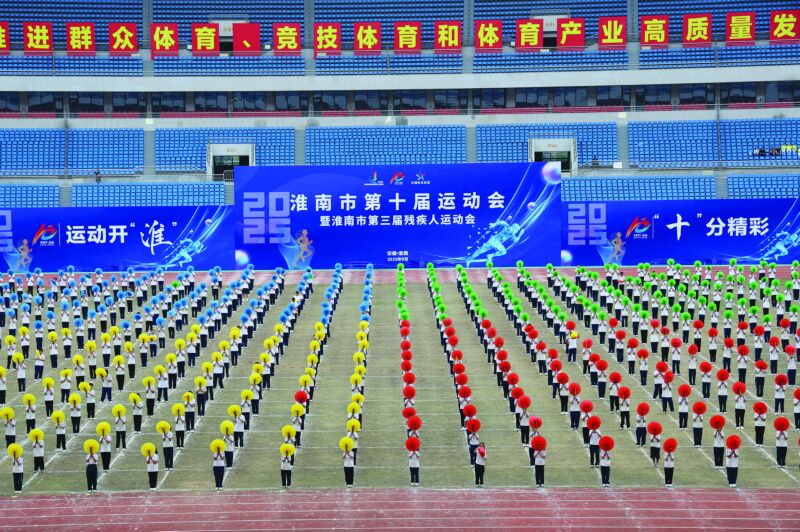 金秋時節,丹桂飄香;全民健身,全民健康。9月27日下午,淮南市第十屆運動會暨第三屆殘疾人運動會在市奧體中心激情開幕。全市10支縣區代表團,23支社會部代表團,5支中學生部代表團,殘疾人代表團,裁判員代表團及市民觀眾約2萬人參加了開幕式。開幕式還舉行了精彩的文體表演。