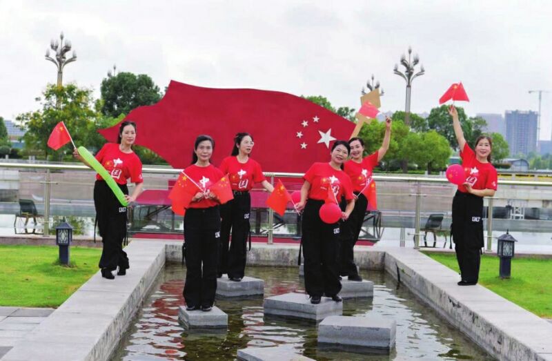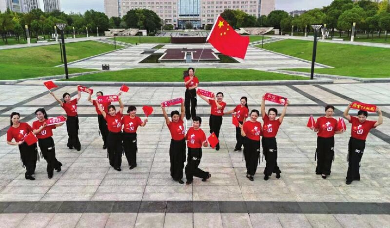 9月27日,淮南藝路同行舞蹈隊的姐妹們載歌載舞,通過與國旗同框的方式,表達對偉大祖國的美好祝福和真摯情感。