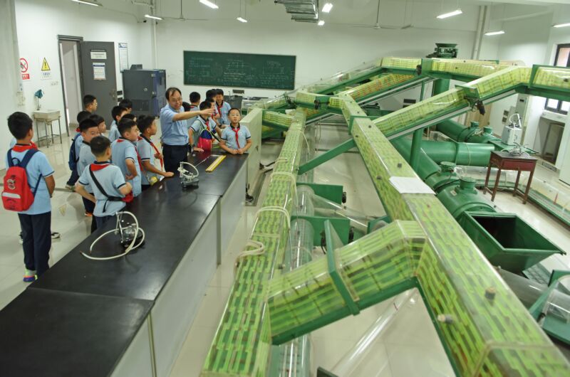 國慶假期,田家庵區(qū)第十八小學組織學生走進安徽理工大學實驗室,通過科學課、科學實驗及游戲互動,感受科學魅力。圖為學生在安徽理工大學實驗室,了解煤礦智能通風系統(tǒng)工作原理。