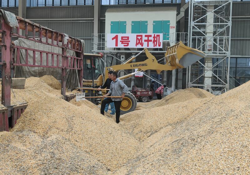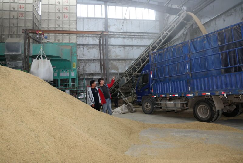 10月9日,鳳臺縣桂集鎮勇敢村五斗谷農業種植專業合作社全力收購秋糧。 (記者 廖凌云 攝)