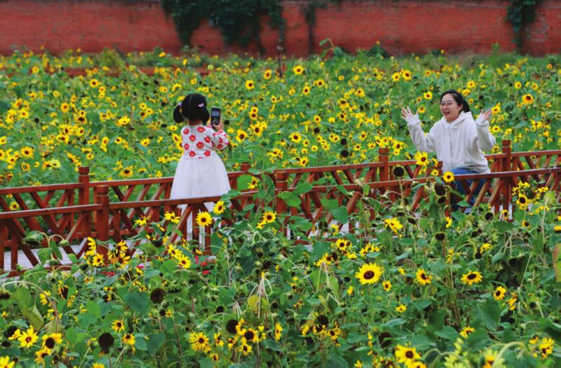 寒露時節(jié),大部分花卉已褪去了絢麗的色澤,壽縣古城香草小鎮(zhèn)院內(nèi),矮生多頭向日葵——菊芋依然展露笑顏,熱情地迎接著每一位游人。