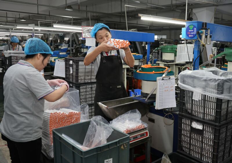 位于毛集經濟開發區的安徽天艦文具科技有限公司是中國文化出海的標桿企業,榮膺中宣部、商務部等四部委聯合認定的“國家級文化出口重點企業”,與全球81個國家的知名品牌建立了穩定的OEM戰略合作關系,并在27個國家擁有自有品牌代理網絡。其中,“諾雅”品牌榮獲“安徽品牌示范”稱號,目前年產5.4億支勾勒筆,致力于成為“中國學生安全繪畫用筆引領者”。圖為公司馬克筆生產車間。