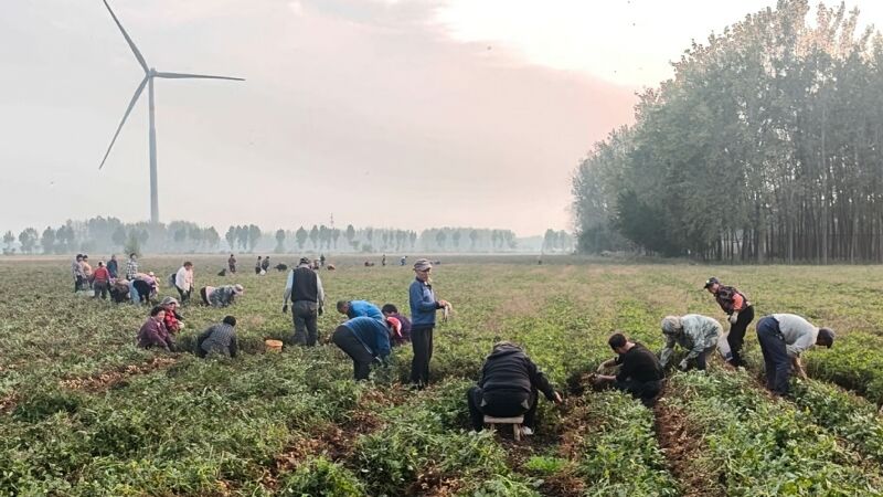 11月4日,鳳臺縣尚塘鎮碩博農機合作社負責人李效龍趁晴好天氣組織社員采摘、晾曬夏花生。今年,李效龍通過調整種植結構,共種植夏季花生近千畝,經過科學管理,畝產達400公斤,實現土地增收、農業增效。圖為社員正在收獲花生的場景。