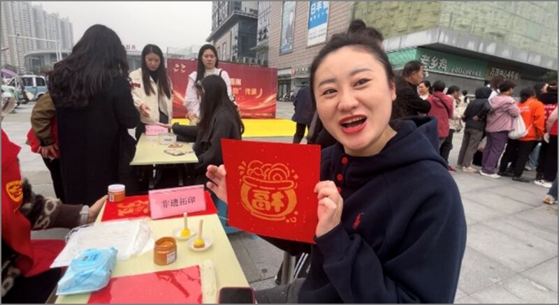 活動現場分為文化展演與趣味互動兩大板塊,傳統武術與現代舞蹈輪番上演,博得陣陣掌聲;最受歡迎的還是投壺、非遺拓印、非遺漆扇和中式串珠四大體驗區。市民秦女士高興地說:“買菜正好路過這里,有幸參與了活動,親身體驗了一下做漆扇和串珠,收獲很大!”