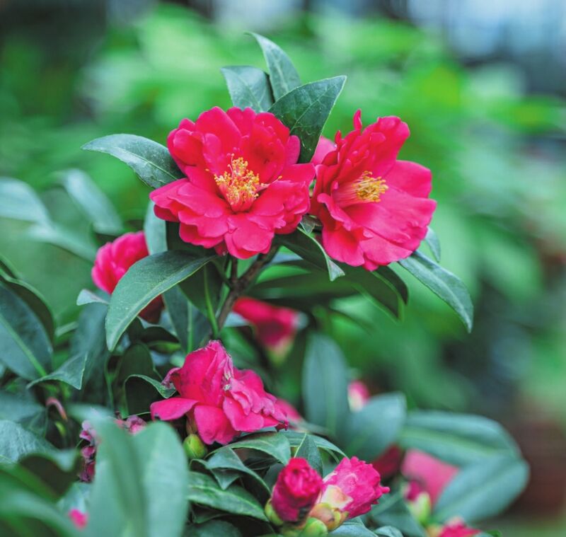 盆栽茶花養殖技巧——茶花在立冬之后持續開花,是冬季家庭盆栽的首選。盆栽茶花養殖技巧:1.土壤:按熟化紅壤土50%、木屑或食用菌渣40%、餅肥粉或牲畜糞10%的比例混合,澆水適量并發酵熟化后使用;2.光照:冬春季可接受全天日照,夏天需避免陽光直射,要將植株移到見光背陽、通風良好的環境中養護;3.溫度:茶花生長適宜溫度為18-25℃,冬季雖然耐寒,但在氣溫驟降前需將花盆移到背風向陽處安全越冬;4.濕度:茶花喜濕,春秋季每日澆水一次,夏季早晚各澆水一次,每月可澆一次0.5-1%的硫酸亞鐵水,以防土壤堿化;5.營養;根據薄肥勤施的原則,每月以腐熟枯餅水、花卉專用肥進行1-2次根外施肥,生長旺季以1-2%的植物生長素噴施葉片。