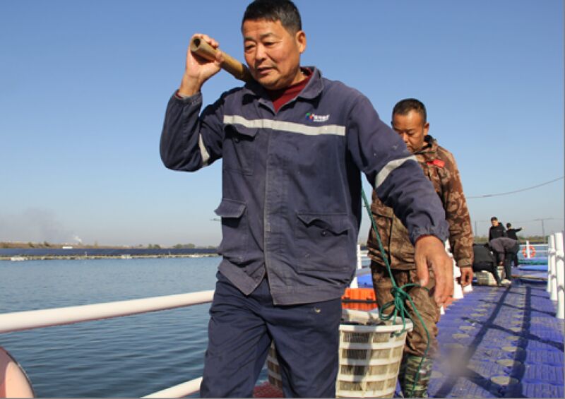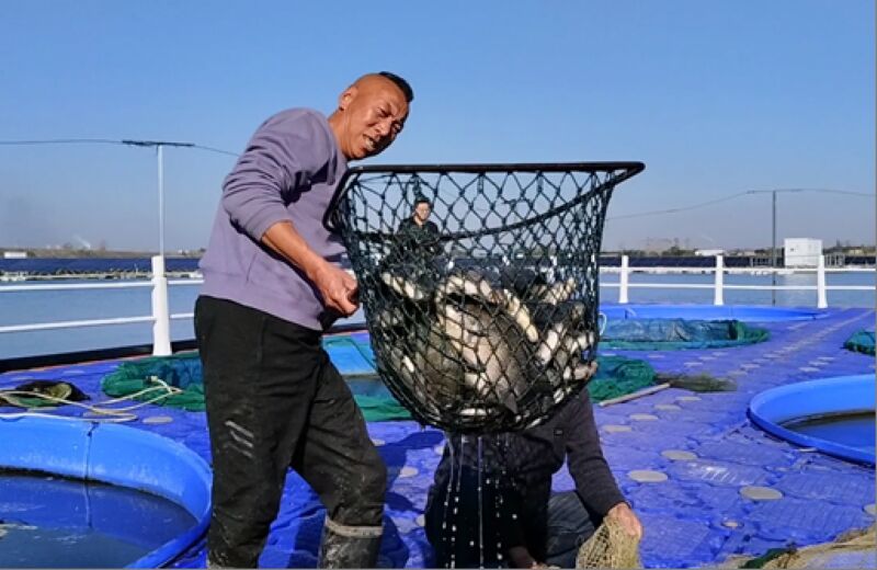 淮南市采煤沉陷區(qū)生態(tài)養(yǎng)殖牧場漂浮圏桶淮王魚養(yǎng)殖基地里,漂浮在水面上的8個大型圈筒陸續(xù)進(jìn)入收獲季,漂浮圈筒直徑4米,深3.5米,圈筒內(nèi)水流涌動,淮王魚、黃金鯽、羅非魚、瓦氏黃顙等多個品種的魚兒活力十足,漂浮圏桶養(yǎng)魚“生態(tài)漁業(yè)示范模式”獲得成功。在溫暖的陽光照射下,魚鱗泛著光,人們臉上洋溢著收獲的喜悅。