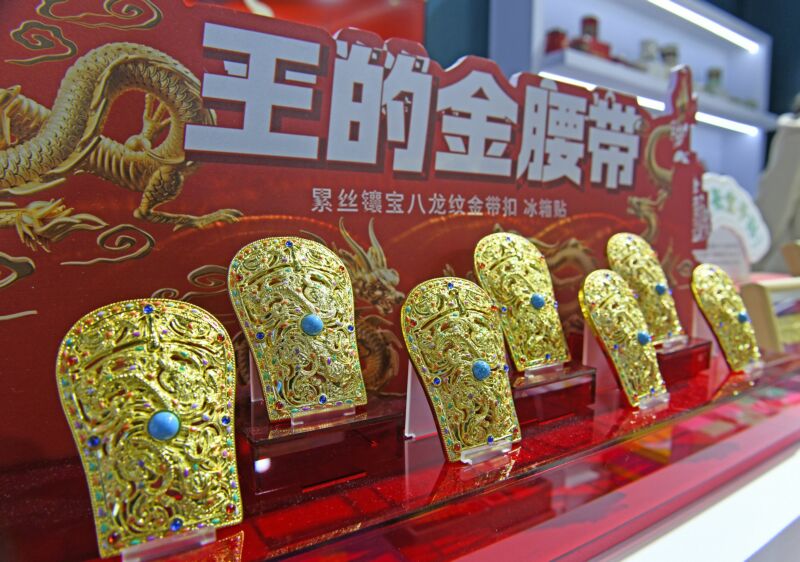 安徽谷語文化產業有限公司展出“王的金腰帶”冰箱貼成為展會中爆款產品。