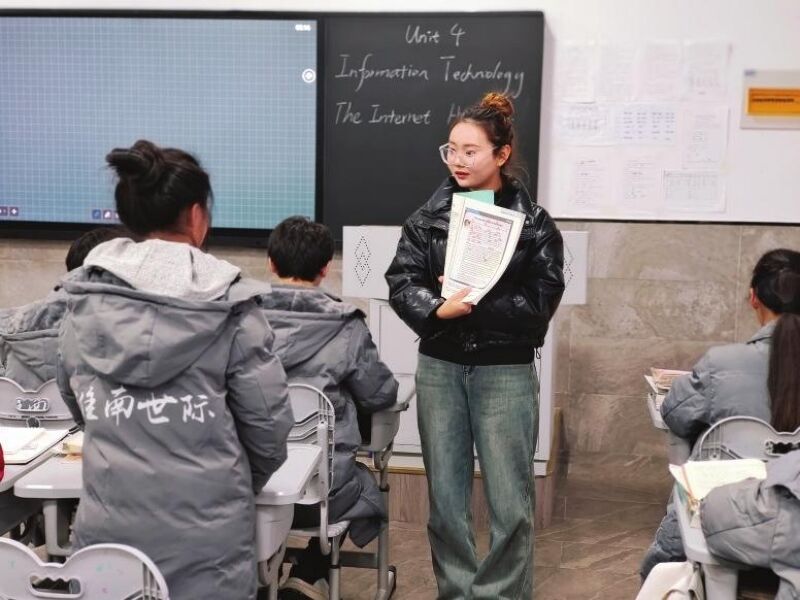 相較于吳麗麗的二十載堅(jiān)守,年輕教師周夢(mèng)瑤則代表了淮南民辦教師隊(duì)伍的新生力量。自2022年1月起,她在淮南世際藝術(shù)學(xué)校擔(dān)任中職英語(yǔ)教師,注重因材施教,結(jié)合學(xué)生實(shí)際設(shè)計(jì)趣味課堂,強(qiáng)化基礎(chǔ)與實(shí)用技能。