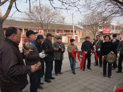 成為鑼鼓隊書記后,他發現表演時只是敲鑼打鼓,不能更多地吸引群眾的興趣。于是他自己拿出1000多元,為鑼鼓隊新添了二胡、旱船等表演樂器和道具。并積極吸納會唱歌、跳舞、拉二胡、吹笛子的新隊員。在他的努力下鑼鼓隊表演時增加了許多老百姓喜聞樂見的節目,受到群眾的熱烈歡迎。隨即,隊員迅速增加到五十多人,其中年齡最小的49歲,最大的已82歲。