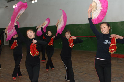 圖為1月17日毛集藝術學校的學生在排練舞蹈節目時的場景。