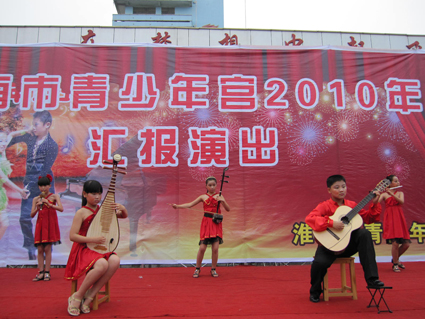 7月4日下午5時許,淮南市青少年宮前的廣場上人山人海,叫好聲、鼓掌聲連連,這里正在熱鬧進行著的是淮南市青少年宮2010年匯報演出。