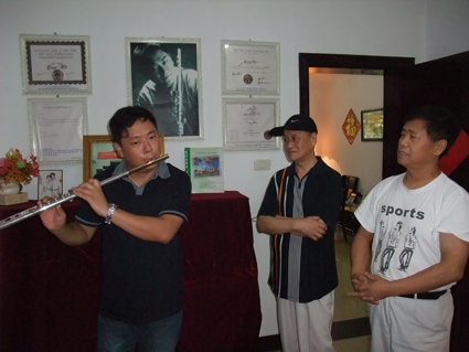 8月10日9點(diǎn)左右,記者來(lái)到了淮南田家庵龍泉北村。一段悠揚(yáng)明快的笛音從一房?jī)?nèi)傳出,仿佛天籟之音,記者猜想那一定是馬勇父母的家,敲門(mén)尋訪,果然猜中。走進(jìn)大門(mén),記者見(jiàn)到了馬勇,只見(jiàn)他約有一米七八左右,身體健碩,說(shuō)起話(huà)來(lái)思維清晰、條理分明。據(jù)馬勇介紹,他兄妹兩人,自己排行老大,原先的家住在大通九龍崗嚴(yán)家湖。他8歲的時(shí)候,有一次上街買(mǎi)東西,被一輛自行車(chē)撞傷骨折,只能在家休養(yǎng)。他的父親馬慶山當(dāng)時(shí)是原礦務(wù)局十七中學(xué)的音樂(lè)老師,會(huì)吹單簧管、長(zhǎng)笛等多種樂(lè)器,父親看他在家待著很無(wú)聊,就給了他一把竹笛,每次教他幾個(gè)音,沒(méi)想到他學(xué)得快吹得好,這一發(fā)現(xiàn)令馬慶山非常驚奇。馬勇傷好后,父親決定讓他繼續(xù)學(xué)習(xí)長(zhǎng)笛。當(dāng)時(shí)馬慶山跑遍整個(gè)淮南市,花了200元錢(qián)為馬勇買(mǎi)了一把長(zhǎng)笛,開(kāi)始教他吹長(zhǎng)笛,于是,馬勇的長(zhǎng)笛之路就此開(kāi)始。為了讓馬勇學(xué)好長(zhǎng)笛,馬慶山讓馬勇拜專(zhuān)業(yè)老師,原淮南市歌舞團(tuán)團(tuán)長(zhǎng)楊江順為師。由于楊老師家住在田家庵區(qū)洞山地區(qū),馬勇每天奔波于洞山與九龍崗之間。有時(shí)候?qū)W完長(zhǎng)笛回到家都十來(lái)點(diǎn)了,楊老師看他來(lái)回奔波很辛苦,暑假的時(shí)候便決定讓他吃住在自己家里,這樣一學(xué)就是4年,直到馬勇考上中央音樂(lè)學(xué)院附中。馬勇說(shuō),那段日子讓他很難忘,楊老師燒的一手紅燒肉至今讓他難以忘懷。12歲那年,馬勇來(lái)到了北京中央音樂(lè)學(xué)院附中學(xué)習(xí)。由于吹奏長(zhǎng)笛大都采用腹胸混合式呼吸,最難學(xué)的就是通過(guò)腹部的控制,用肚子里的氣吹出音,老師在課堂上的講解,只能靠學(xué)生自己揣摩,很快,馬勇悟出了自己的一套練習(xí)方法。他做仰臥起坐,以此來(lái)鍛煉腹部的真氣,仰臥起坐做到一半打住,然后維持動(dòng)作不動(dòng),一直堅(jiān)持,找到那股氣存在的感覺(jué)。為了練全身放松的感覺(jué),他連走路都不停地晃動(dòng)自己的肩膀,同學(xué)們看到都十分奇怪,詢(xún)問(wèn)他是不是有毛病,馬勇只是笑而不答,繼續(xù)練習(xí)。功夫不負(fù)有心人,這種練習(xí)的方法果然帶來(lái)了不錯(cuò)的效果,馬勇的長(zhǎng)笛吹得越來(lái)越好。1993年他考入中央音樂(lè)學(xué)院。
