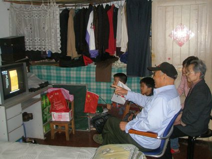 為了招呼老街坊四鄰共同觀看,唐老特意騰出屋子,擺放好水果茶具,另外還特意翻出了珍藏的五星紅旗和北京奧運會徽旗。他告訴記者,“嫦娥二號”選擇在國慶節當天升空,有著特殊的意義,這不僅是為新中國華誕獻禮,也是億萬中華兒女的期望。不一會的功夫,唐老家里就坐滿了人,徐老師還帶來孫子,他說:“小孫子一直喜歡看軍事書籍,今天也把他帶來看‘嫦娥二號’長長見識,今后讓這小子也去開發太空。”