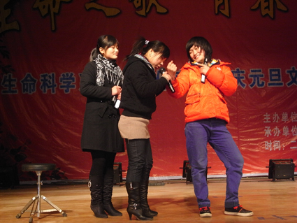 淮南職業(yè)技術(shù)學院的同學準備的小品《唐伯虎點秋香》讓人捧腹,歌曲《新不了情》深情款款。