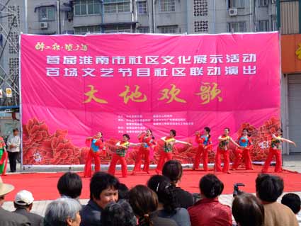 據(jù)了解,為了更好地貫徹黨的十七屆五中全會精神,鼓舞全市人民大建設(shè)、大發(fā)展,滿懷豪情邁向“十二五”的干勁,市委、市政府盛大推出了“大地歡歌”首屆社區(qū)文化展示活動。此次演出是由淮南市委、淮南市人民政府主辦,淮南市委宣傳部,淮南市文化廣電新聞出版局、淮南市民政局等部門承辦,老齡藝術(shù)協(xié)會負(fù)責(zé)演出。活動堅持面向基層、服務(wù)百姓,文化搭臺、群眾唱戲,對加強社區(qū)文化建設(shè),豐富人民群眾文化生活,營造團結(jié)向上、和諧文明的社會文化環(huán)境。 圖為活動現(xiàn)場。