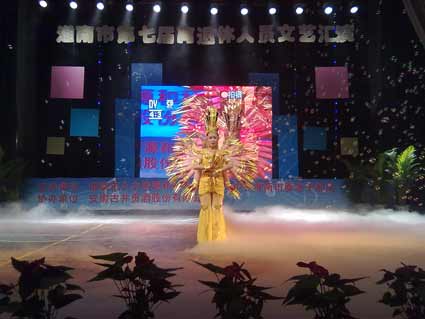 4月28日下午,淮南市第七屆離退休人員文藝匯演在淮南礦業(yè)集團大禮堂隆重舉行。共有來自社區(qū)的22支文藝代表隊為廣大離退休老同志表演了精彩紛呈、豐富多彩的文藝節(jié)目,有音樂腰鼓、京劇、花鼓舞蹈、歌伴舞等等。圖為美輪美奐的舞蹈《千手觀音》。
