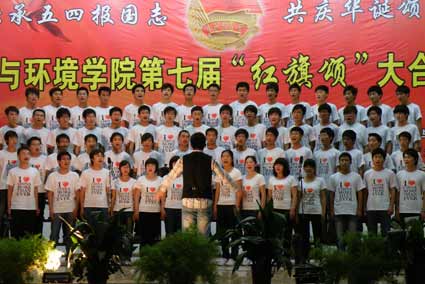 負(fù)責(zé)指導(dǎo)“紅歌”大合唱比賽的老師告訴記者:這次安徽理工大學(xué)地環(huán)學(xué)院第七屆“紅旗頌”紅歌比賽全部是由學(xué)生自己組織的,通過(guò)唱響紅歌,學(xué)生們表達(dá)了向即將到來(lái)的建黨90周年的祝福,這個(gè)活動(dòng)增強(qiáng)了學(xué)生之間的凝聚力。