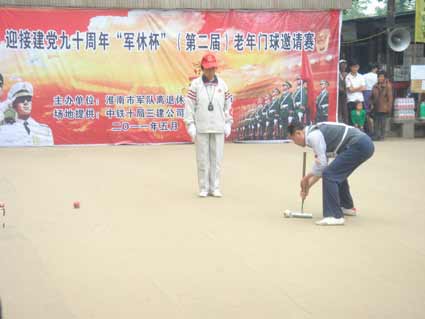 為迎接建黨90周年,豐富離退休老同志的晚年生活,增強(qiáng)離退休老同志的體質(zhì),促進(jìn)和諧家園建設(shè),以實(shí)現(xiàn)“老有所學(xué)、老有所為,老有所樂”的目標(biāo),5月31日,第二屆“軍休杯”老年門球邀請(qǐng)賽在中鐵十局三公司門球場(chǎng)開賽,來(lái)自全市11個(gè)單位的老年門球隊(duì)參賽。