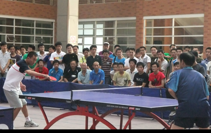 9月4日下午,淮南市的許多乒乓球愛好者心情和艷陽高照的天氣一樣火熱,以削中反攻的獨特打法著稱的第43屆世乒賽男團冠軍主力隊員丁松率領2011年深圳大運會乒乓球冠軍隊來安徽理工大學、淮南市環保局等單位開展乒乓球交流活動。