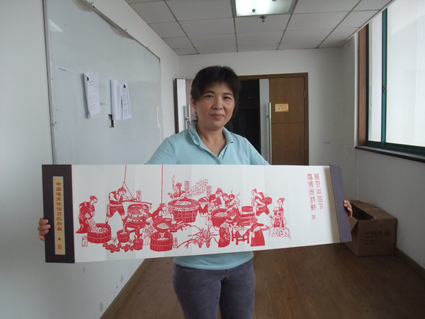 淮南民間藝人創作剪紙作品《豆腐制作工藝流程圖》,贈送給參加豆腐文化節的中外賓客