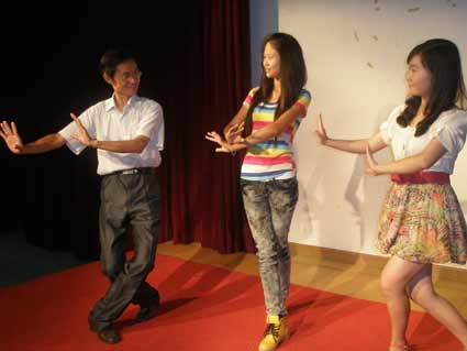 圖:淮南師范學院周朝生副教授正在向學生傳授《西廂記》選段中的推劇
