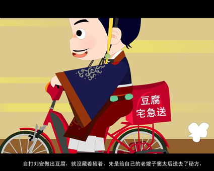 短短十分鐘的動(dòng)漫評(píng)書,卻包含了豆腐傳播的各個(gè)歷史節(jié)點(diǎn),從漢代豆腐發(fā)明起源,到南北朝時(shí)期推廣素食,再到唐宋以及二戰(zhàn)之后的廣泛傳播,使得豆腐在全世界發(fā)揚(yáng)光大,成為人們餐桌上不可或缺的一道美食。評(píng)書以動(dòng)漫版“百姓講壇”為背景,邀請(qǐng)我市文藝界名人配音、擔(dān)當(dāng)歷史顧問(wèn),并融入“中國(guó)好聲音”、“非誠(chéng)勿擾”等流行元素,加上淮南本土特色打造而成。《豆腐千年》不僅有開(kāi)場(chǎng)詩(shī),結(jié)尾處還留有懸念,讓人意猶未盡。評(píng)書還將劉安煉丹、“黎祁”由來(lái)等歷史故事穿插其中,讓人們了解豆腐在南北朝時(shí)期被稱為“小宰羊”,享有“國(guó)宴”待遇,以及在現(xiàn)今每年的奈良唐招提寺法會(huì)上,日本人都要用裝滿豆腐和豆制品的“淮南堂制”布袋子,去祭拜鑒真大師。作為全省首部原創(chuàng)動(dòng)漫評(píng)書,其形式新穎,語(yǔ)言幽默,表現(xiàn)手法多樣,采用Q版造型和中國(guó)風(fēng)場(chǎng)景相結(jié)合,是老少皆宜的文化快餐。