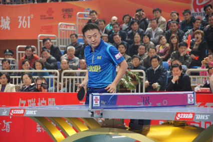 就這樣一個有著輝煌戰績的國家隊運動員在淮南比賽時,他與陳玘率江蘇中超電纜隊與邱貽可率領的四川長虹隊相遇時,仍很認真地做準備。賽場上,他的每一球都奮力撲救,贏得全場熱烈掌聲。憑借自己的技術能力,馬琳令對手不敢發長球,賽場上出現了馬琳時而貼在桌前打、時而拉開距離大力扣殺的場景,現場氣氛氣勢磅礴、有張有弛。最終江蘇中超電纜隊以3:0贏得了比賽,在場觀眾大呼過癮。