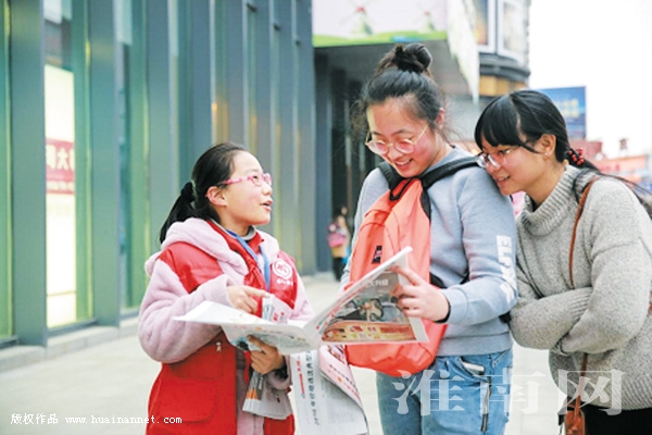 淮南日報社小記者俱樂部“愛心賣報”活動于3月15日下午4時30分拉開帷幕。當天,300多名小記者走上街頭義務賣報,2000多份淮河早報“3·15”特刊被愛心人士一掃而空。淮南日報社小記者俱樂部工作人員告訴淮河早報、淮南網記者,他們希望通過這樣的活動培養孩子們的溝通能力,希望孩子們可以從小做起,培養誠實守信的優良品格。據悉,此次小記者賣報所得的善款將用于愛心公益事業。