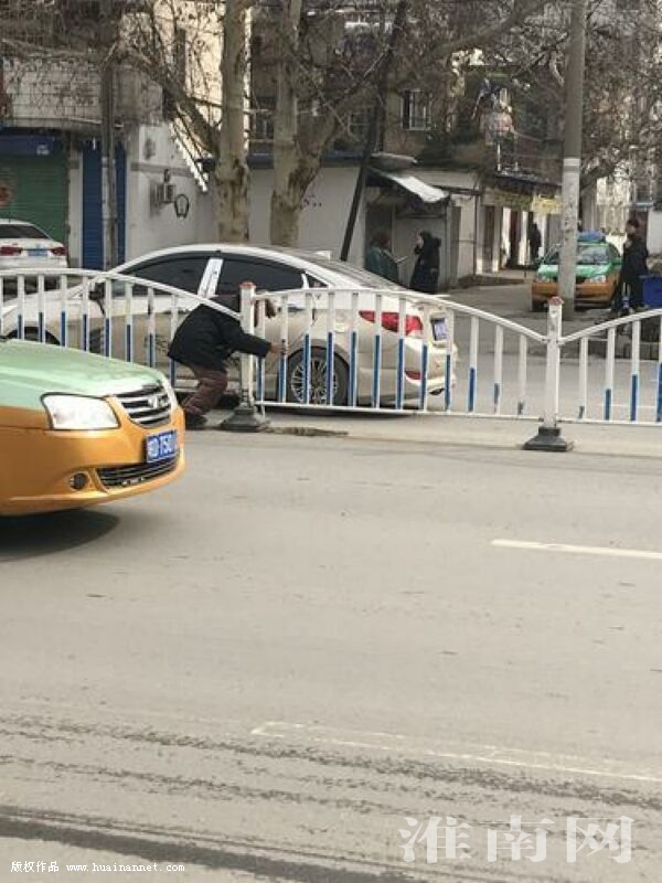2月5日下午2時許,在萬達廣場門前有名老人橫穿馬路走到中間后,彎腰擠進護欄縫隙后,向馬路對面走去,來往車輛從他身邊呼嘯而過,所幸遇到好心司機停下車等老人過去。(記者)