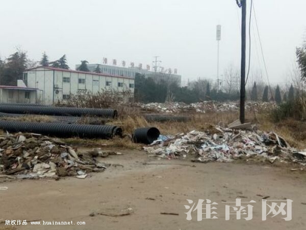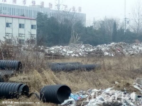 在這片堆滿建筑垃圾的空地東邊,有一個(gè)用水泥鋪就的小廣場。小廣場上停著一些工程車輛及小轎車。記者在這個(gè)小廣場西邊看到,一些直徑約半米的黑色塑料管就隨意丟棄在小廣場上及周邊的空地上。這些黑色塑料管有的是不足一米長的殘破管頭,有的是長約幾米的大管子,就其數(shù)量而言,難計(jì)其數(shù)。