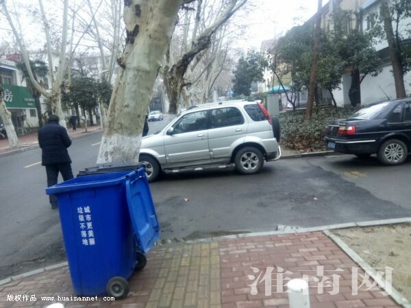 近日,淮河早報、淮南網記者在迎賓路看到,一名司機將自己的車橫停在人行道上,導致人行道受阻。行人至此,只能從機動車道上通過。(記者)