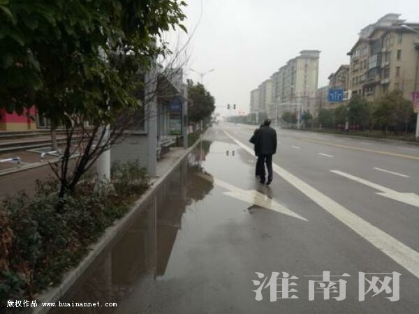 2月19日上午,淮河早報、淮南網記者接市民反映來到位于高新區民祥街的“淮河大道”公交站臺,看到該處因地勢低洼、排水不暢,導致站臺前積水,給市民乘車帶來不便。(記者)