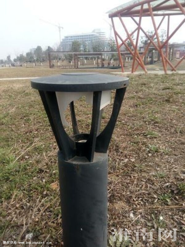 最近,淮河早報(bào)、淮南網(wǎng)記者在中央公園南端一條人行道上看到,12盞景觀地?zé)舻牟A庹旨盁襞萑繐p毀。有些燈罩內(nèi)還被塞滿了垃圾。(記者)