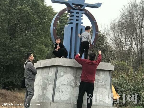 春暖花開,人們紛紛走出家門來到公園、景區踏青游玩。然而在老龍眼濕地公園,淮河早報、淮南網記者發現,一些家長把孩子放到景區內的景觀雕塑上攀爬,這種行為既不文明,同時也會給孩子帶來安全隱患。(記者 王偉)