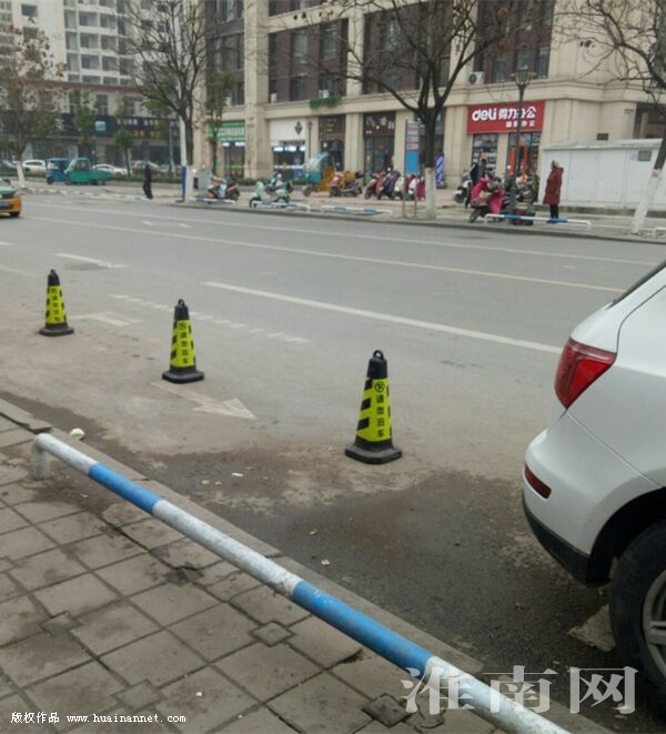 近日,淮河早報、淮南網記者途經學院南路時,看到部分施劃于道路兩側、用于解決居民停車需求的公共停車位被附近商鋪占據,成為了他們專有的“私家停車位”,既有礙市容整潔,也不方便居民停車。(記者)