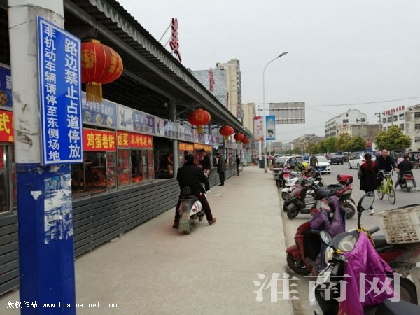 在金家?guī)X西路、信誼四季城東邊路口新建的一處美食廣場(chǎng)吸引了眾多人,不過由于處在路口旁,一些非機(jī)動(dòng)車亂停亂放影響了道路交通正常通行。在道路邊,雖然設(shè)置了禁止占道停車的提醒牌子,但依然有非機(jī)動(dòng)車成排停放在路邊(如圖)。(記者)