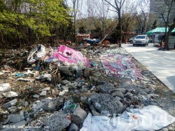 市民羅女士向淮河早報、淮南網記者反映,在吾悅廣場東端路邊的空地上,堆積著大量的建筑垃圾及生活垃圾。這些垃圾既污染了環境,又影響了市容市貌。(記者)