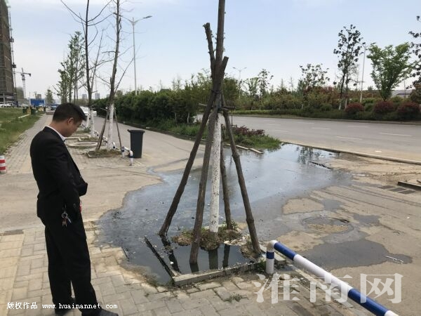 隨后,淮河早報(bào)、淮南網(wǎng)記者來到了安徽新地銳意物業(yè)服務(wù)有限公司淮南分公司英倫聯(lián)邦小區(qū)物業(yè)服務(wù)中心。該中心負(fù)責(zé)人與淮河早報(bào)、淮南網(wǎng)記者一起來到現(xiàn)場(chǎng)查看情況后,稱這處樹穴下確實(shí)埋著該小區(qū)的一條污水管道,但這條管道以前都是好好的,是挖樹穴導(dǎo)致管道破裂才出現(xiàn)的污水往外冒的情況,之前他們也向高新區(qū)管委會(huì)進(jìn)行了反映。而且,就目前的情況來看,要想修好這條破損的管道,防止污水再次往外冒,必須移樹、破路,把管道扒開才行,對(duì)此他們物業(yè)實(shí)在沒有辦法,只能向有關(guān)部門反映。