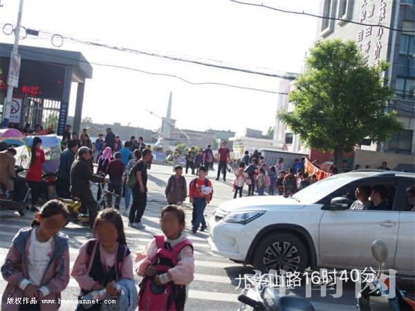 16時10分左右,淮河早報、淮南網記者來到人流、車流較多的潘集區第四小學門前,此時未到放學時間,路上交通還算通暢,未禮讓行人的現象時有發生。